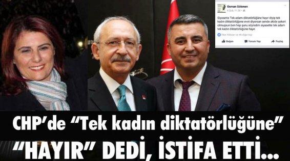 İstifasıyla ilgili, “Çok sevdiğim CHP İlçe Başkanlığı görevinden istifa ettim. Beni yalnız bırakmayan yönetim kuruluna, kadın ve gençlik kollarına, partililerimize ve İncirliova halkına teşekkür ve özürlerimi belirtiyorum” şeklinde açıklama yapan ancak daha sonra sosyal paylaşım hesabından yaptığı açıklama ile gerçekleri kamuoyuna duyuran Osman Gökmen, “Siyasette tek adam diktatörlüğüne hayır deyip tek kadın diktatörlüğüne evet diyorsan sende akide şekeri olmuşsun. Ben hep şunu söyledim. Siyasette tek adam diktatörlüğüne de tek kadın diktatörlüğüne de hayır..” şeklindeki ifadelerle CHP Genel Başkanı Kemal Kılıçdaroğlu’na gönderme yaparken istifasının sorumlusu olarak da Aydın Büyükşehir Belediye Başkanı Özlem Çerçioğlu’nun “Tek kadın diktatörlüğüne” işaret etti.