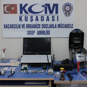 Cezaevi firarisi olan ve kredi kartlarının kötüye kullanılması suretiyle dolandırıcılık suçundan halen aranan 1985 doğumlu H.G. isimli şahsın Kuşadası İlçesinde bulunduğu ve kart kopyalama faaliyetine devam ettiği, suç işlemekte kullandığı malzemeleri de ikametinde gizlediğinin bilgileri alınması üzerine operasyon düzenlendi.