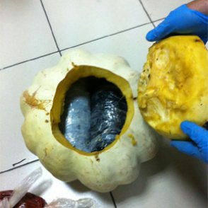 Polisin yaptığı arama sonucunda, otobüste bal kabağı içerisine gizlenmiş 2 paket halinde toplam 1 kilo 930 gram esrar maddesi ele geçirildi.