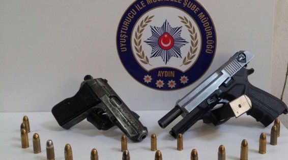 0,20 gram metamfetamin maddesi, 1 adet ruhsatsız 7,65 mm VZOR marka tabanca ve 3 adet 7,65 mm fişek, 1 adet WALTER marka tabanca ve 15 adet 9 mm fişek ele geçirildi.