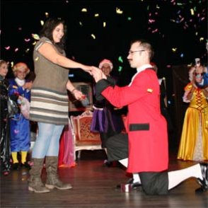 Oyuncu Demireğen’in sahnede diz çöküp kız arkadaşına evlilik teklifi yapmasıyla Latife Karaayak büyük şaşkınlık yaşadı. Seyircilerin “evet” diyerek tempo tutmasıyla birlikte Karaayak evlilik teklifini kabul etti. Tiyatroseverlerde bu mutluluk tablosuna alkışlarıyla eşlik ettiler.